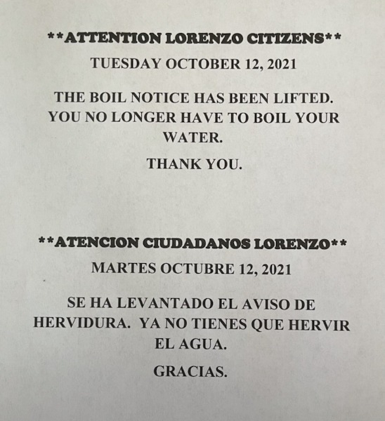 Figure: 30 TAC §290.47(c)(3) Boil Water Notice Rescinded October 30, 2020 On OCTOBER 28, 2020 the Texas Commission on Environmental Quality required the City of Lorenzo public water . . .